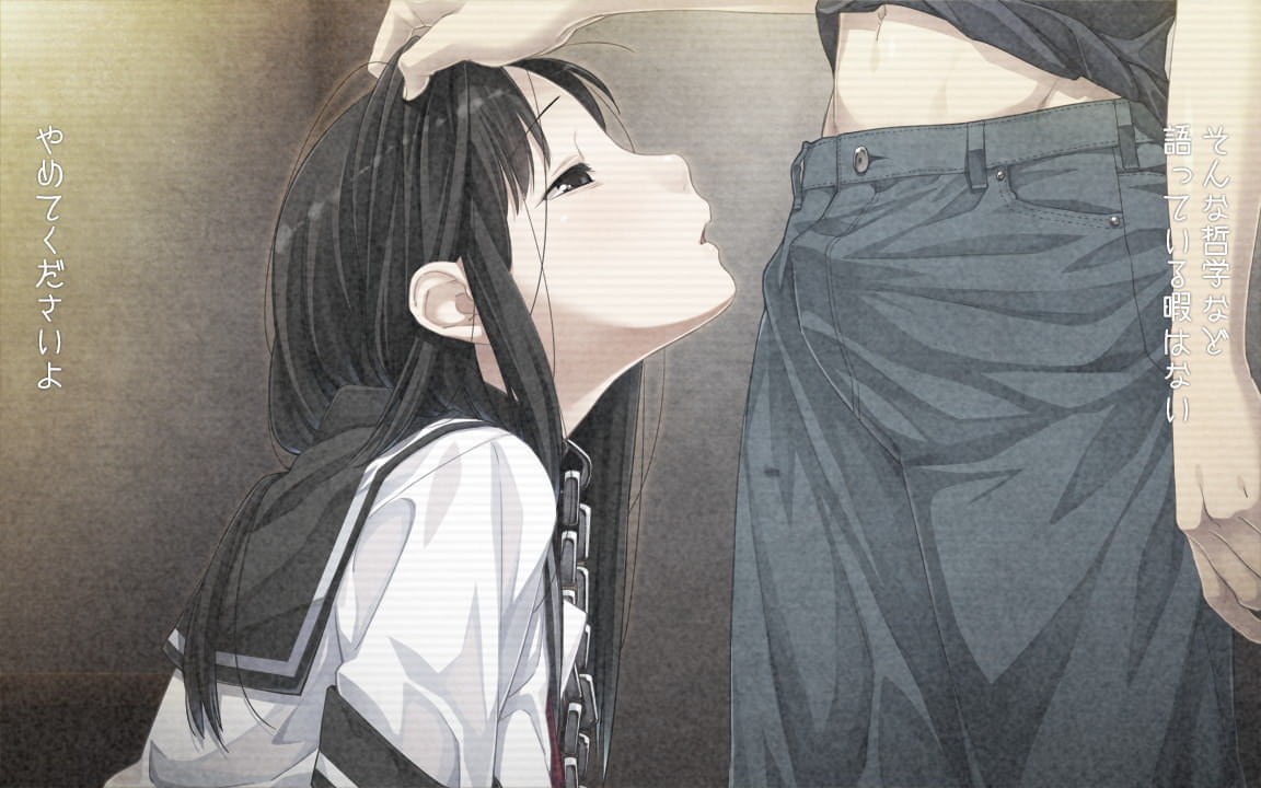 I will now carry out what I've always imagined. My plan is perfect. Now I just have to choose a girl to entrap in my scheme. Anyone will do, as long as she's not boring. For example, the girl walking in front of me with the long black hair. I don't desire a brightly shining summer. What I crave are days filled with a girl's screams and despair.