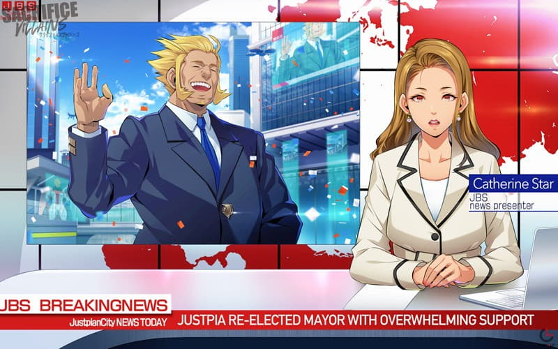 As a deterrent to the evildoers, the SUPERHEROES constructed this self-sufficient stronghold, which thrives despite the surrounding CHAOS. JUSTOPIA, the ultimate hero and bane of countless villains, is its FOUNDER, MAYOR, and CHAMPION. Justopia also founded the HERO SOCIETY and serves as its chairman, giving orders to the other heroes as they fight crime and bring peace to the city and the world.